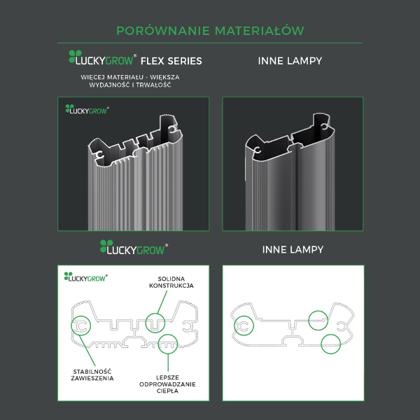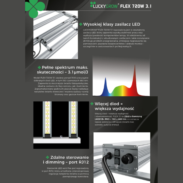 LuckyGrow FLEX 720W 2.85 µmol/J — sam LED/LED z adapter HPS/komplet z zasilaczem