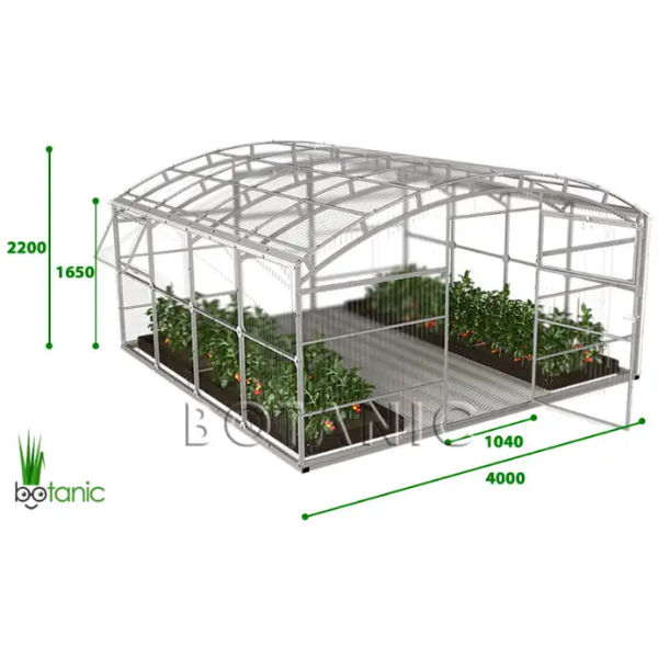 Szklarnia Botanic Rolnik to solidna, modułowa konstrukcja do całorocznej uprawy, która – przede wszystkim dzięki prostym ścianom i dużej wysokości – pozwala komfortowo prowadzić wysokie rośliny oraz ergonomicznie rozplanować ławki, stoły i systemy nawadniania. Co więcej, podwójne łuki i gęsto rozstawione poprzeczki usztywniają stelaż, dlatego konstrukcja pracuje stabilnie nawet przy gorszej pogodzie. Ponadto poliwęglan komorowy (różne grubości i gęstości) utrzymuje wewnątrz stabilny mikroklimat, a do tego jest łatwy w utrzymaniu, więc zyskujesz spokój i powtarzalne plony sezon po sezonie. W efekcie Szklarnia Botanic Rolnik sprawdzi się zarówno w ogrodzie domowym, jak i w małych gospodarstwach, gdzie liczy się niezawodność, bezpieczeństwo i wygoda codziennej pracy.
