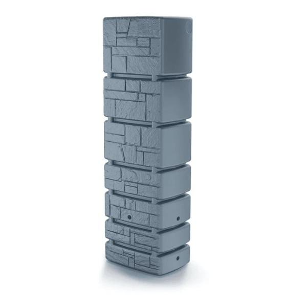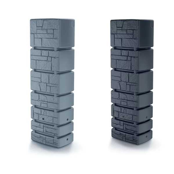 Zbiornik na deszczówkę MPI Tower Stone 500l to smukły, elegancki zbiornik o wyglądzie kamiennej wieży. Wysokość 130 cm i szerokość 77,5 cm pozwalają ustawić go przy ścianie, a pojemność 500 litrów zapewnia solidny zapas wody. Został on starannie wykonany z polietylenu odpornego na promienie UV. Dostępny w dwóch kolorach: granitowym i antracytowym. Dodtkowo zbiornik wyposażony jest w komplet otworów do łatwego montażu armatury. Do wyboru sam zbiornik lub w zestawie z kranikiem i zbieraczem wody z rury spustowej rynny