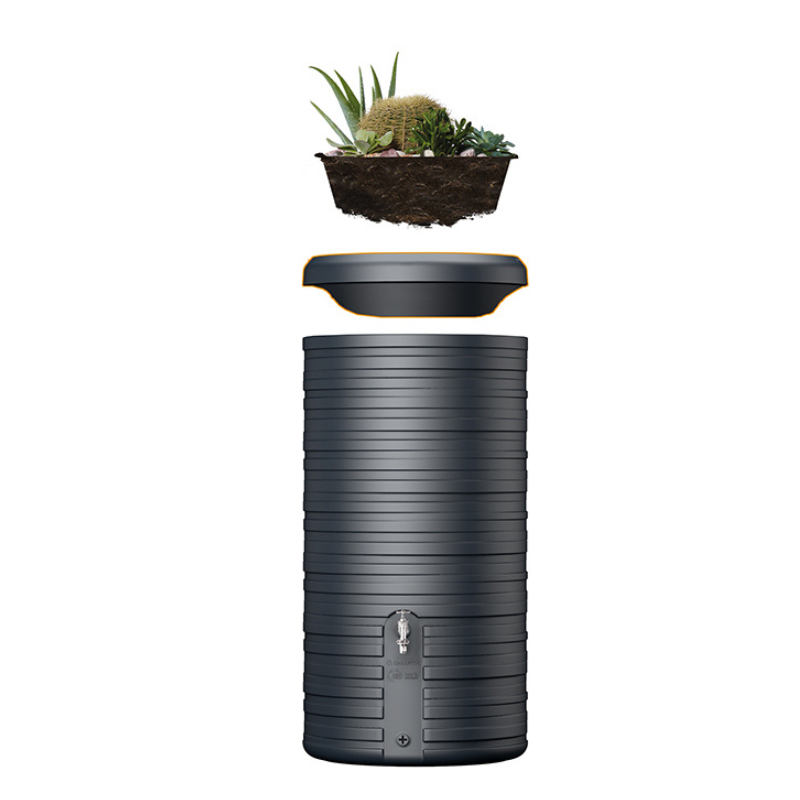 Zbiornik na deszczówkę Nordic 300l to dekoracyjny, naziemny zbiornik do niewielkich instalacji retencyjnych. Model ten występuje w dwóch wariantach kolorystycznych: szarym lub granitowym oraz w dwóch wersjach funkcjonalnych: z donicą lub bez. Dzięki temu można łatwo dopasować go do wielu nowoczesnych i minimalistycznych aranżacji ogrodu lub tarasu. Pojemność 300l sprawdzi się w codziennym podlewaniu roślin ozdobnych i użytkowych w niewielkich ogrodach.
