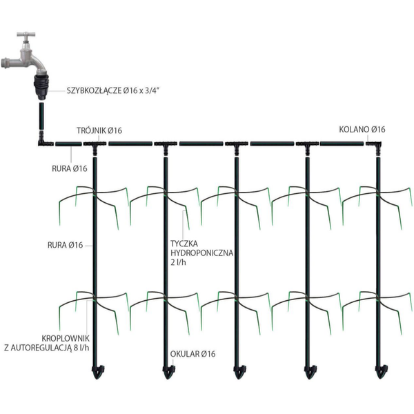 To rozwiązanie idealne w szklarni pomidorowej, przy grządkach podwyższonych i na tarasach z licznymi donicami. Zasilisz je z wodociągu albo z zbiornika na deszczówkę (zalecana pompa/układ podający). Montaż jest szybki, a rozbudowa – intuicyjna: dodajesz kolejne odcinki, rozdzielacze i punkty kroplujące w miarę potrzeb.